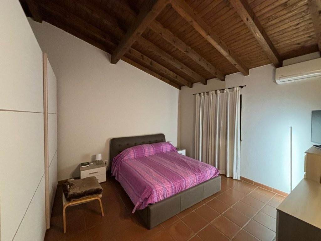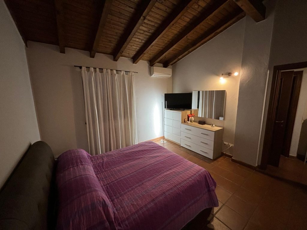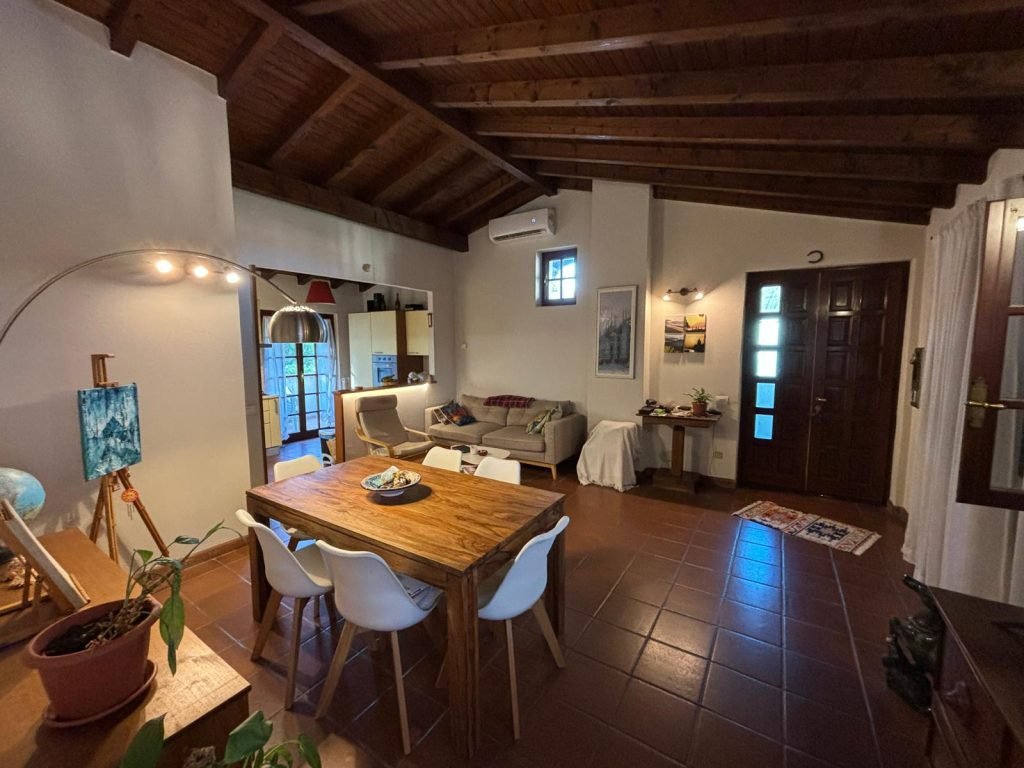 Porta ingresso Legno massello, serramenti in legno con doppi vetri, persiane in legno, zanzariere, tenda da sole, pavimentazione in ceramica in tutta la casa, aria condizionata con pompa di calore, impianto allarme.