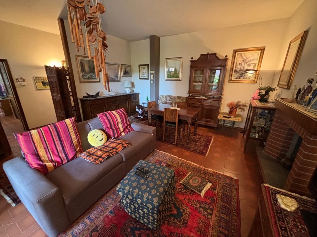PT: disimpegno di ingresso, soggiorno con camino e uscita sul portico, sala pranzo, cucina abitabile, camera matrimoniale, cameretta, doppi servizi, locale hobby e lavanderia/caldaia.